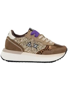 SUN68 Sneaker Big Ally Glitter in similpelle e suede oro Donna