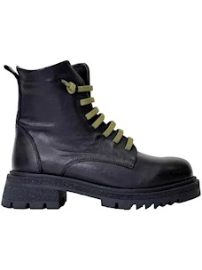 Bueno Anfibi in pelle Donna Nero laccio verde